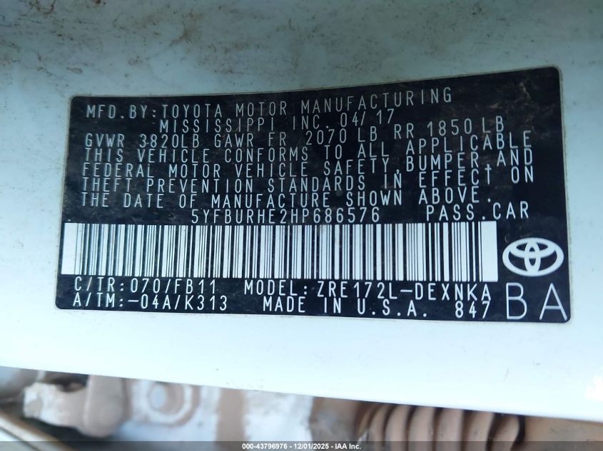 2017 TOYOTA COROLLA L