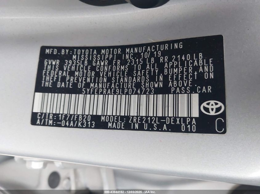 2020 TOYOTA COROLLA 2020 року Бензин, 1.8, Передний привод, vin - 5YFEPRAE9LP074723 из США