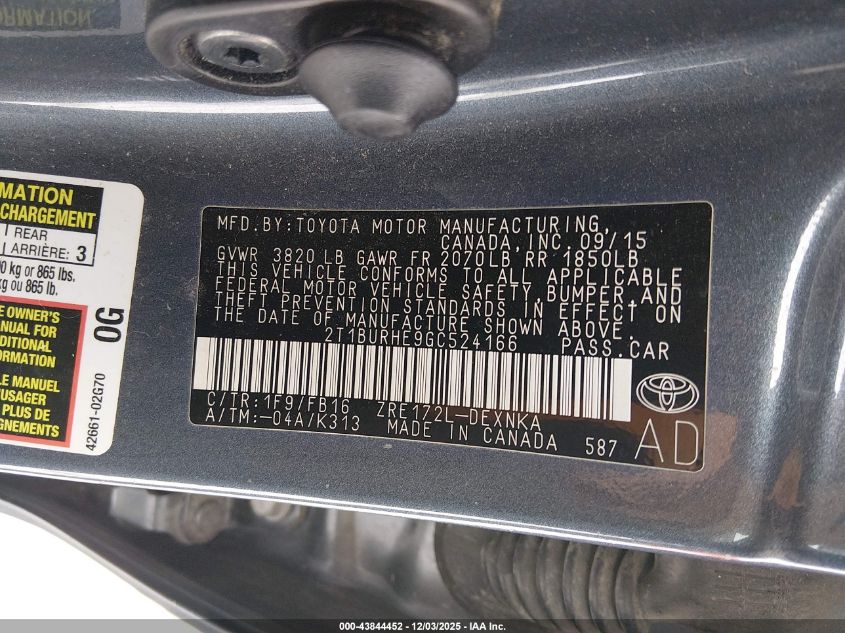 2016 TOYOTA COROLLA L