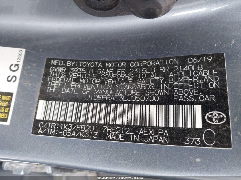 2020 TOYOTA COROLLA 2020 року Бензин, 1.8, Передний привод, vin - JTDEPRAE3LJ050700 из США