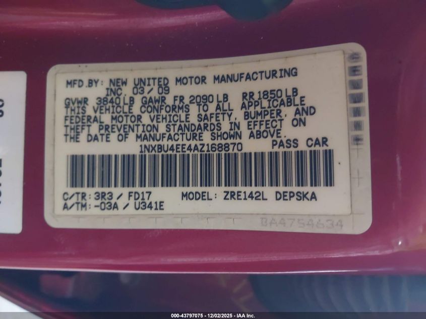 2010 TOYOTA COROLLA BASE