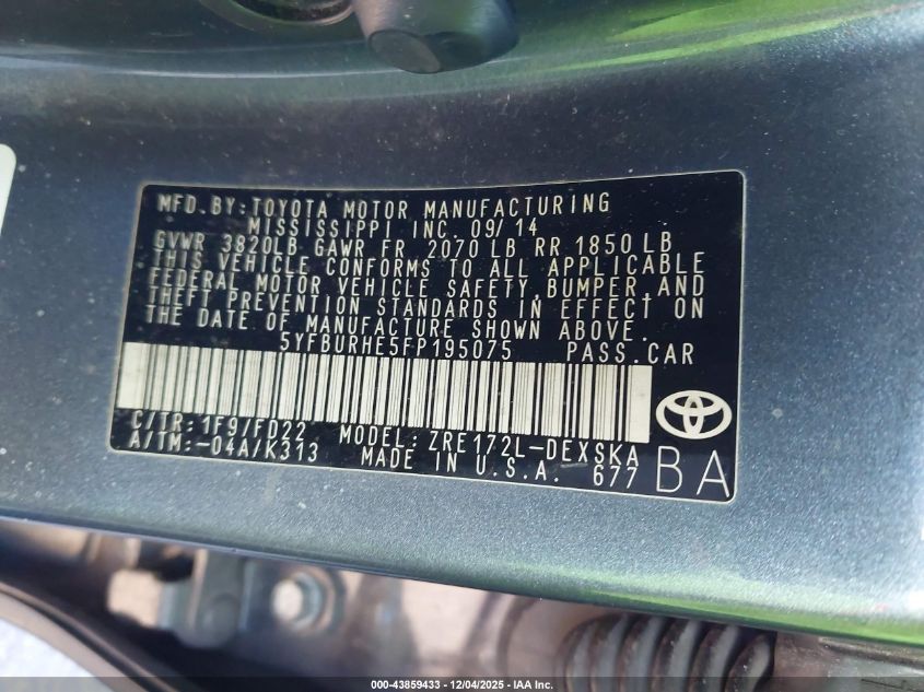 2015 TOYOTA COROLLA 2015 року Бензин, 1.8, Передний привод, vin - 5YFBURHE5FP195075 из США