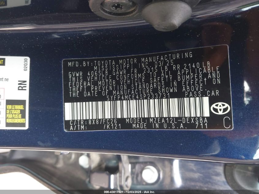 2025 TOYOTA COROLLA LE
