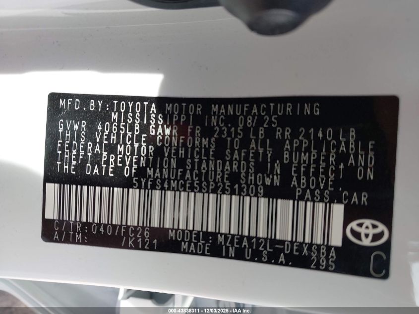 2025 TOYOTA COROLLA 2025 року Бензин, 2.0, Передний привод, vin - 5YFS4MCE5SP251309 из США