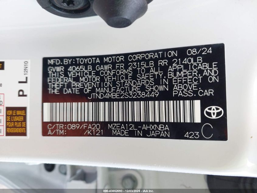 2025 TOYOTA COROLLA 2025 року Бензин, 2.0, Передний привод, vin - JTND4MBE2S3238449 из США