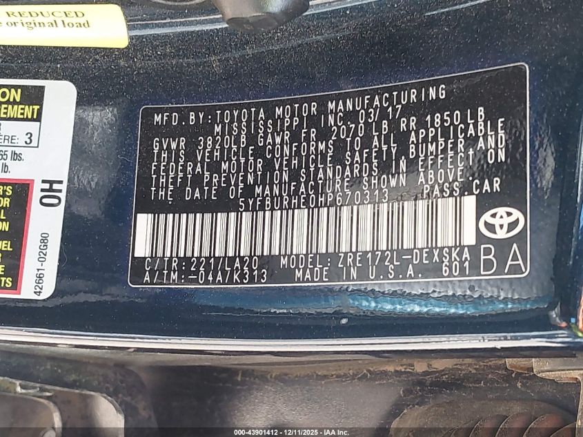2017 TOYOTA COROLLA L