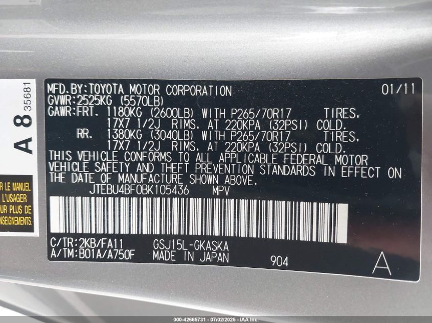 2011 TOYOTA FJ CRUISER