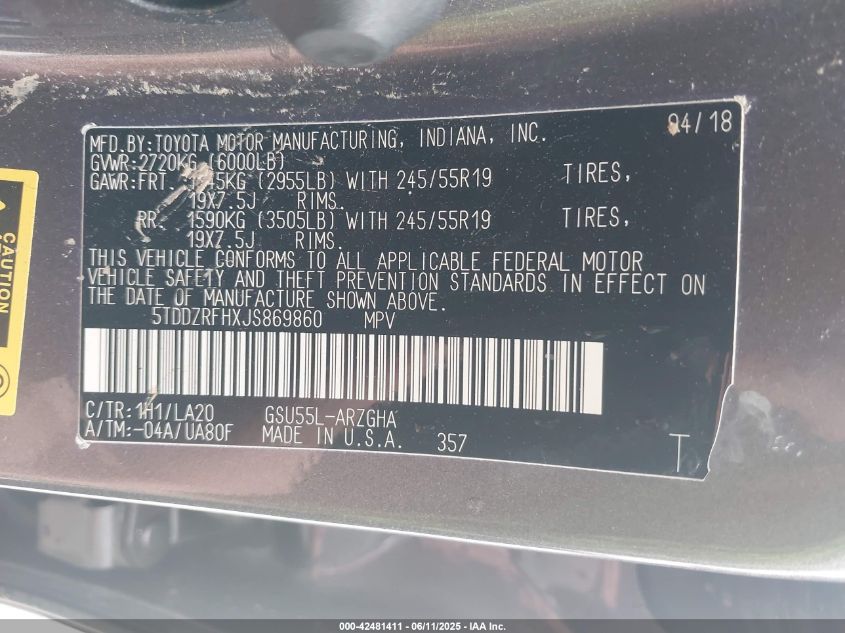 2018 TOYOTA HIGHLANDER 2018 року Бензин, 3.5, Полный привод, vin - 5TDDZRFHXJS****** из США