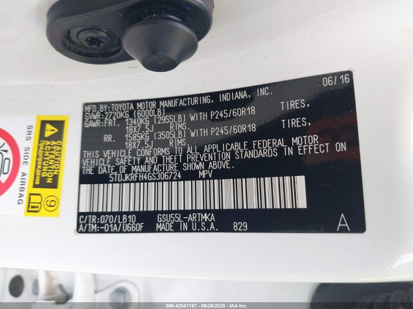 2016 TOYOTA HIGHLANDER 2016 року Бензин, 3.5, Полный привод, vin - 5TDJKRFH4GS****** из США