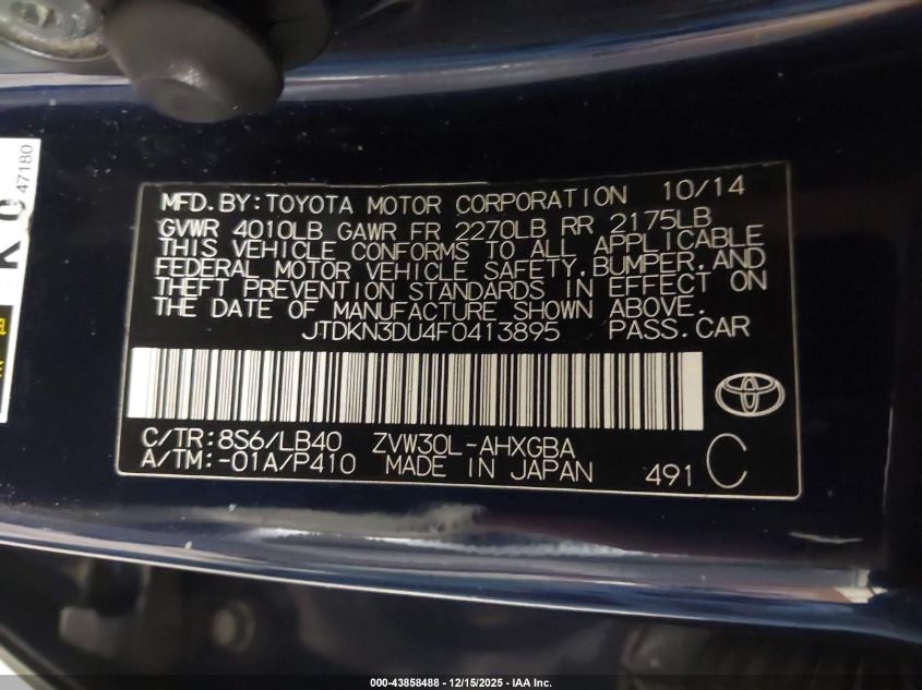 Цвет Цилиндры 4Привод Передний приводVIN JTDKN3DU4F0413895Состояние НеизвестноПовреждения Неизвестно AutoRIA