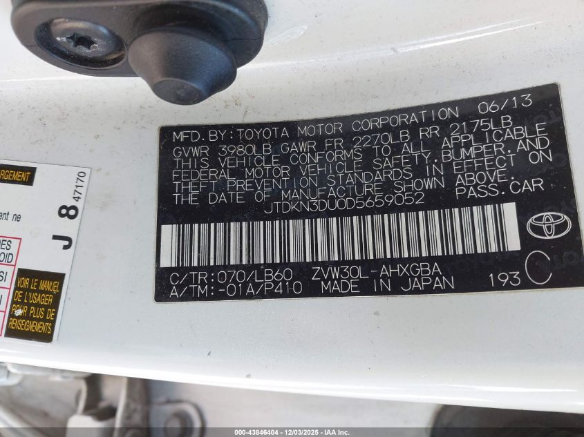 Цвет СеребряныйЦилиндры 4Привод Передний приводVIN JTDKN3DU0D5659052Состояние СтационарноПовреждения Передняя или задняя AutoRIA