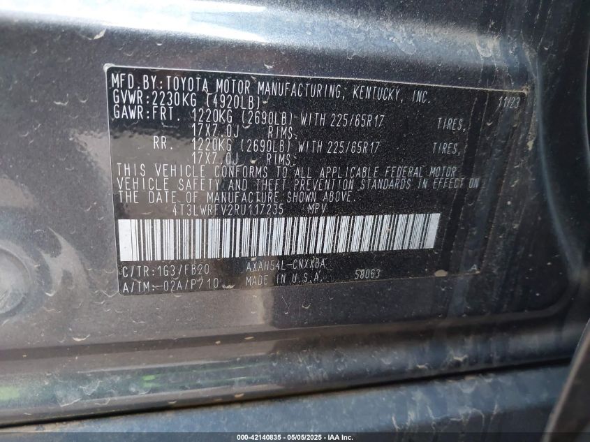 Цвет СерыйЦилиндры 4Привод Полный приводVIN 4T3LWRFV2RU117235Состояние СтационарноПовреждения Правая сторонаДата аукциона 2025-11-04