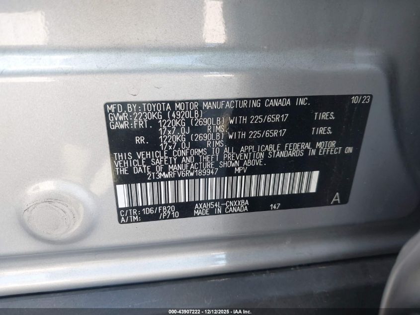 2024 TOYOTA RAV4 HYBRID 2024 року Гибрид, 2.5, Полный привод, vin - 2T3MWRFV6RW189947 из США