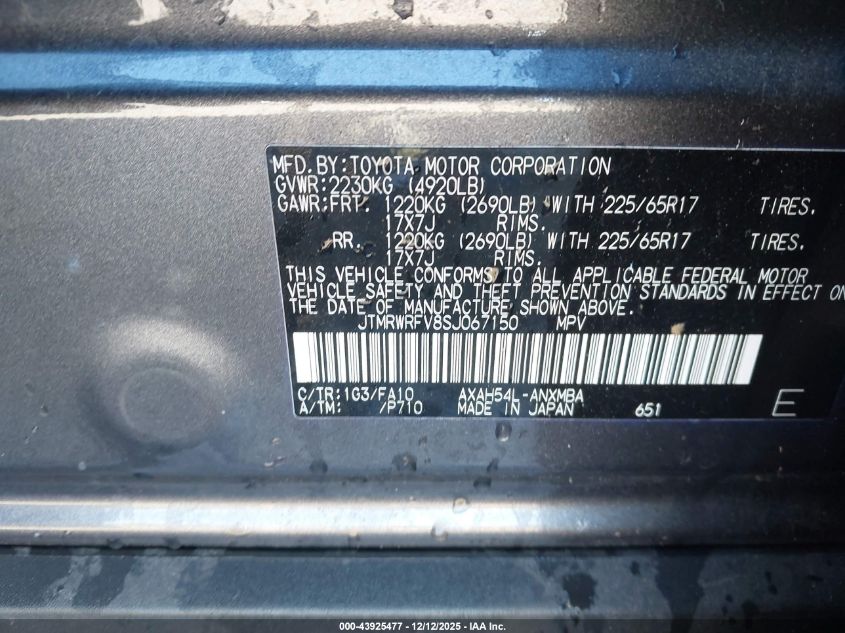 Цвет СерыйЦилиндры 4Привод Полный приводVIN JTMRWRFV8SJ067150Состояние СтационарноПовреждения Передняя или задняя
