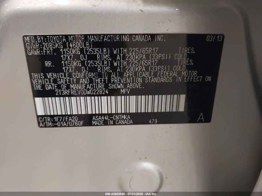 2013 TOYOTA RAV4 2013 року Бензин, 2.5, Полный привод, vin - 2T3RFREV0DW022824 из США