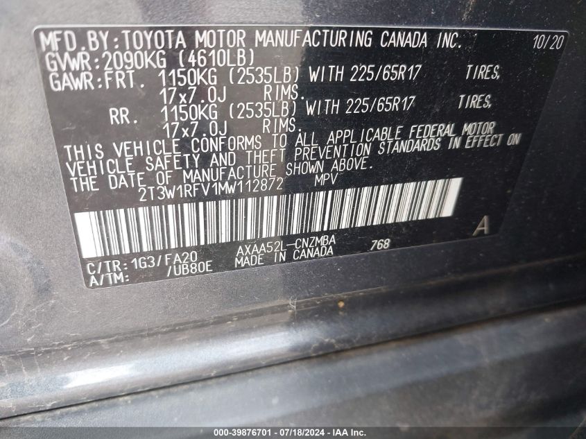 2021 TOYOTA RAV4 XLE