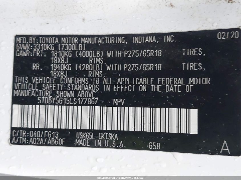 2020 TOYOTA SEQUOIA SR5