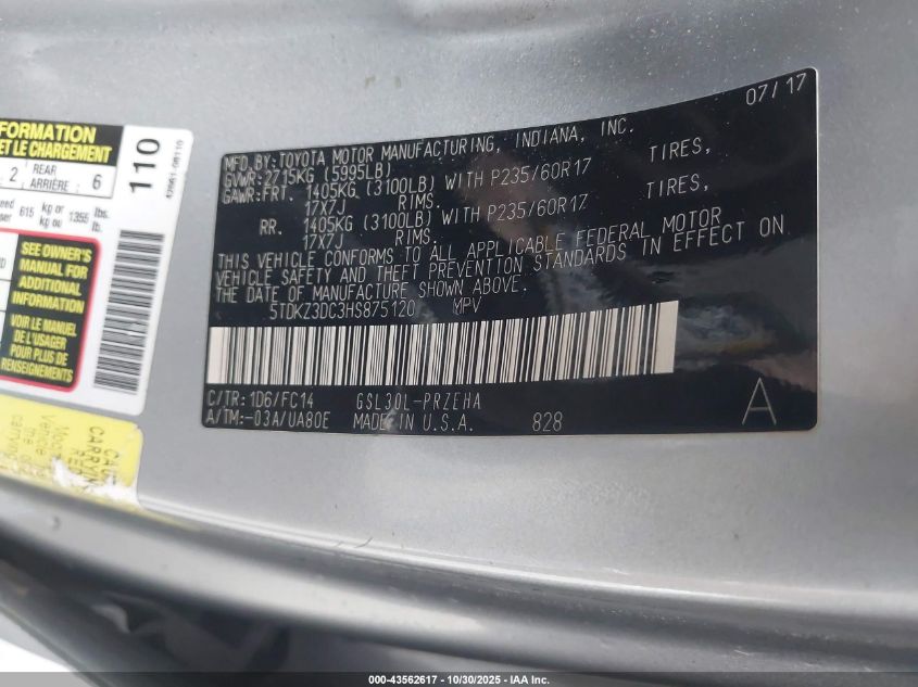 2017 TOYOTA SIENNA