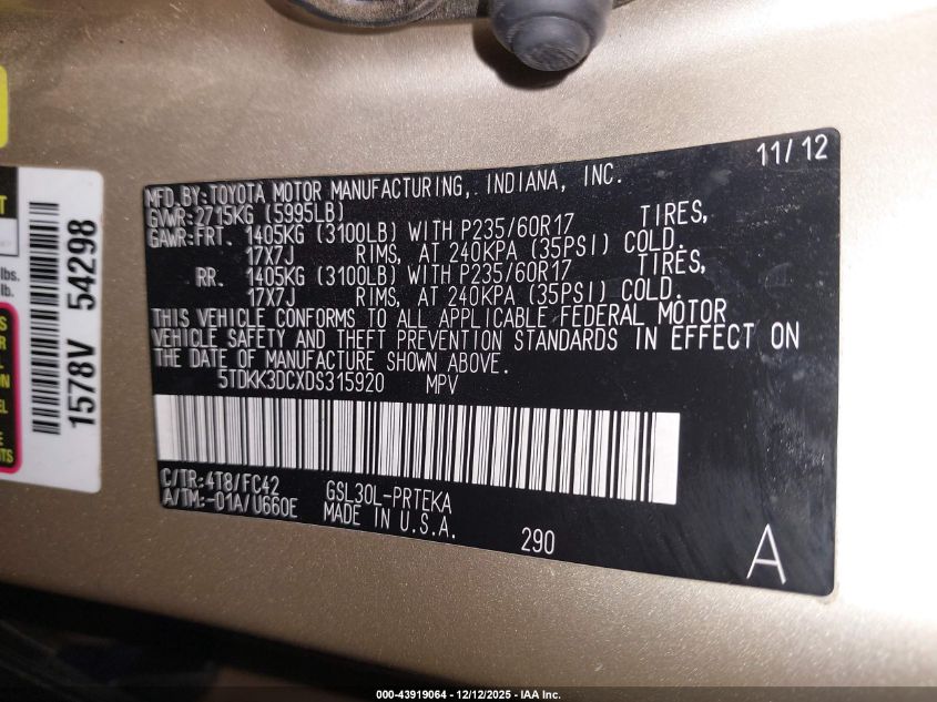 2013 TOYOTA SIENNA