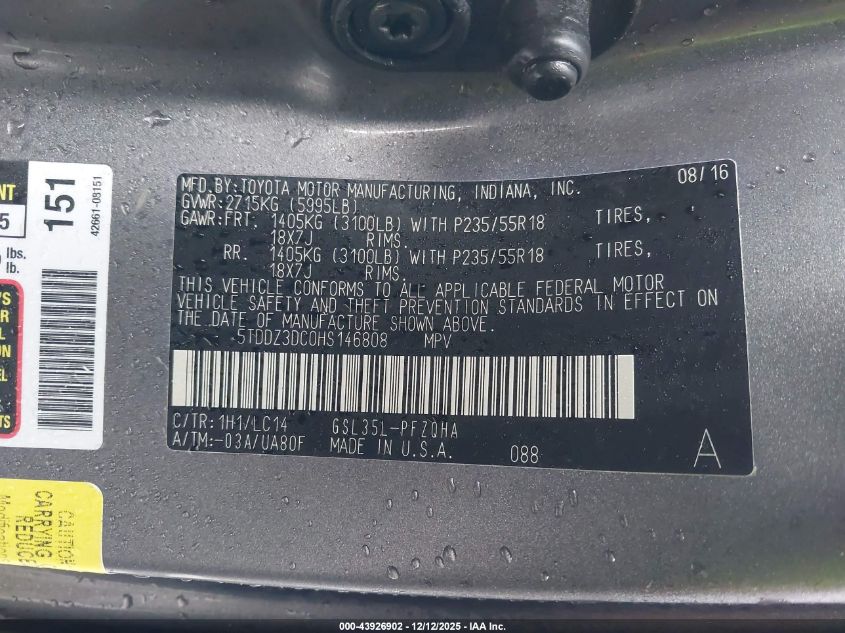 2017 TOYOTA SIENNA