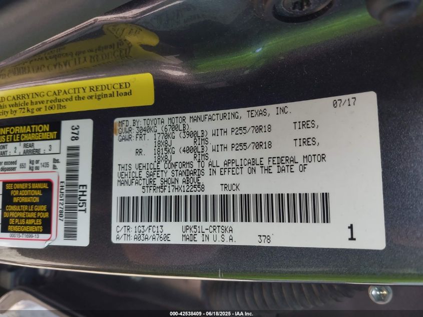 2017 TOYOTA TUNDRA CREWMAX 1794