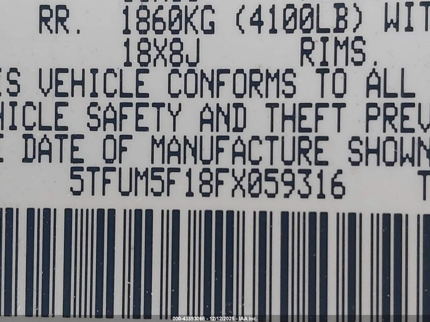 Цвет БелыйЦилиндры 8Привод Полный приводVIN 5TFUM5F18FX059316Состояние Заводится и едет (проверено)Повреждения Передняя и задняя AutoRIA