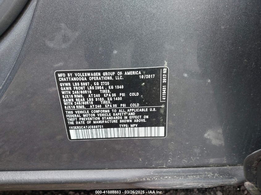 2018 VOLKSWAGEN ATLAS 2018 року Бензин, 3.6, Полный привод, vin - 1V2KR2CA7JC****** из США