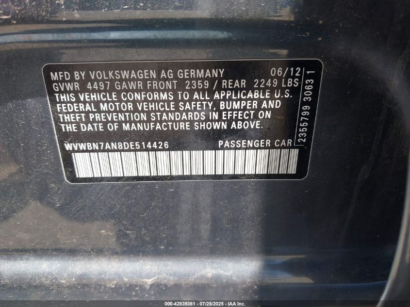 2013 VOLKSWAGEN CC SPORT