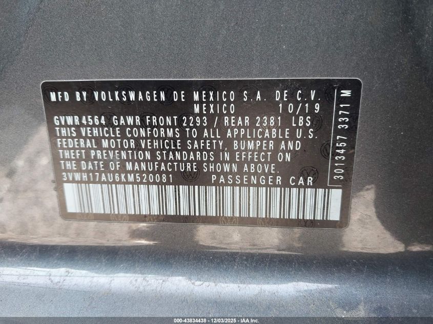 2019 VOLKSWAGEN GOLF ALLTRACK 2019 року Бензин, 1.8, Полный привод, vin - 3VWH17AU6KM520081 из США
