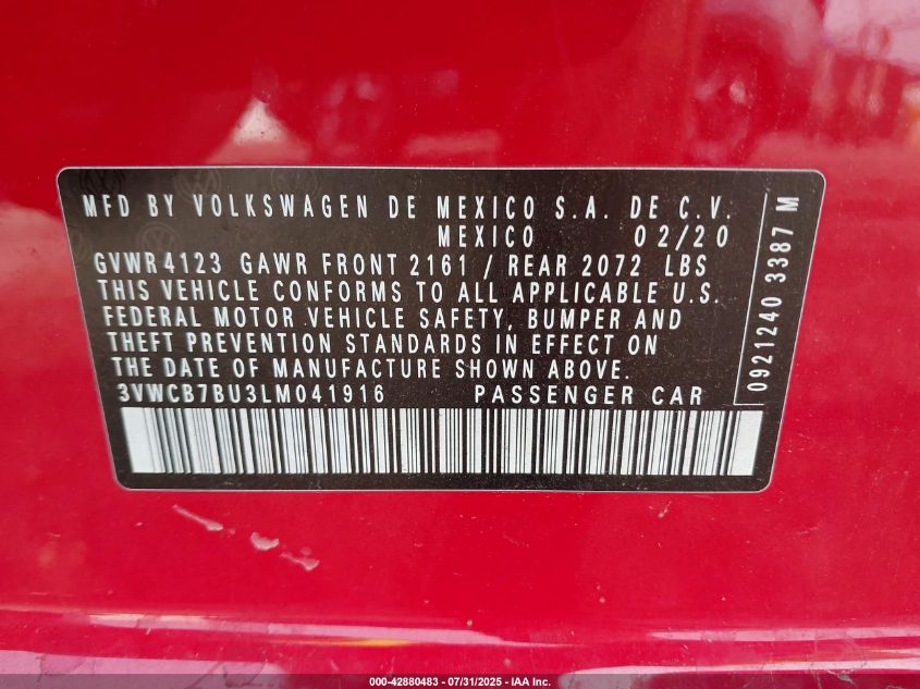 2020 VOLKSWAGEN JETTA 2020 року Бензин, 1.4, Передний привод, vin - 3VWCB7BU3LM****** из США