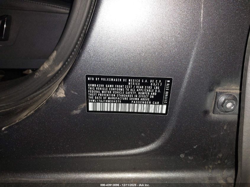 2017 VOLKSWAGEN JETTA 2017 року Бензин, 1.8, Передний привод, vin - 3VWL17AJ1HM394379 из США