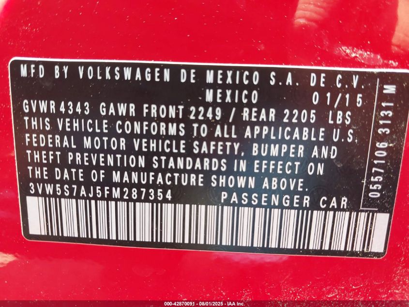 2015 VOLKSWAGEN JETTA 2015 року Бензин, 2.0, Передний привод, vin - 3VW5S7AJ5FM****** из США