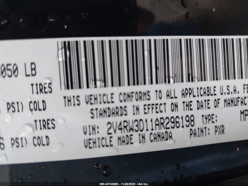 2010 VOLKSWAGEN ROUTAN 2010 року Бензин, 3.8, Передний привод, vin - 2V4RW3D11AR296198 из США