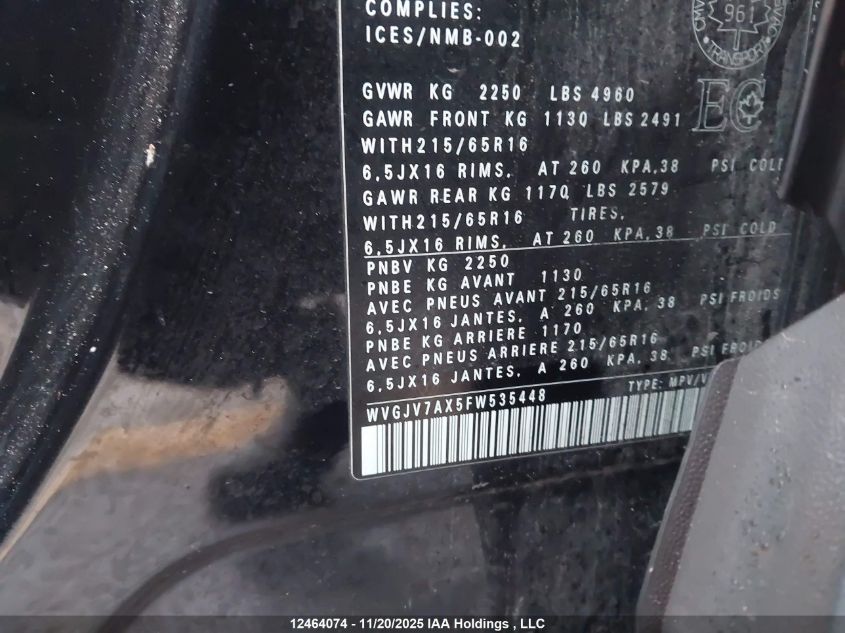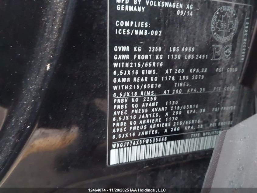 2015 VOLKSWAGEN TIGUAN 2015 року Бензин, , Полный привод, vin - WVGJV7AX5FW535448 из США