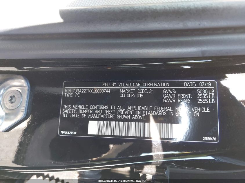 2020 VOLVO S60 2020 року Бензин, 2.0, Полный привод, vin - 7JRA22TKXLG038744 из США