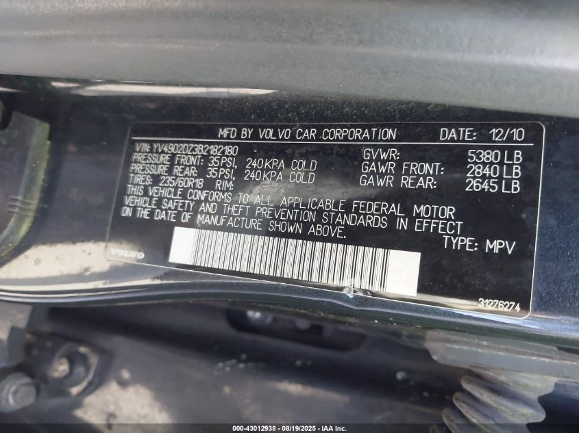 2011 VOLVO XC60 3.2