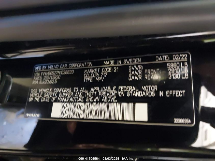 2022 VOLVO XC60 2022 року Гибрид, 2.0, Полный привод, vin - YV4H60DZ7N1****** из США