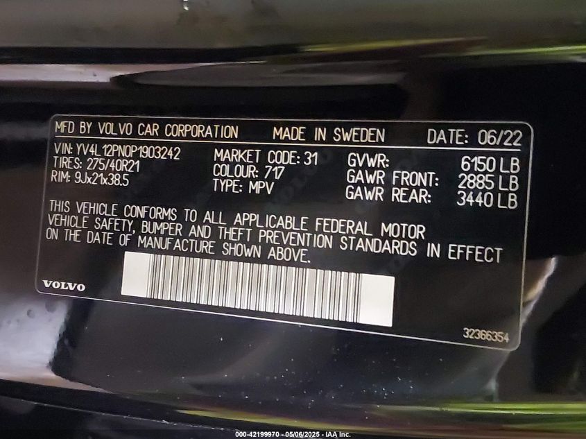 2023 VOLVO XC90 2023 року Бензин, 2.0, Полный привод, vin - YV4L12PN0P1****** из США