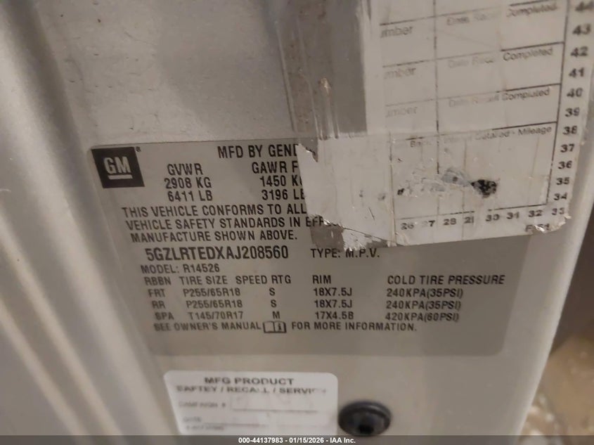 Колір СрібнийЦиліндри 6Привід Передній привідVIN 5GZLRTEDXAJ208560Стан Заводиться та їде (перевірено)Ушкодження ЗадняДата аукціону 2026-02-24