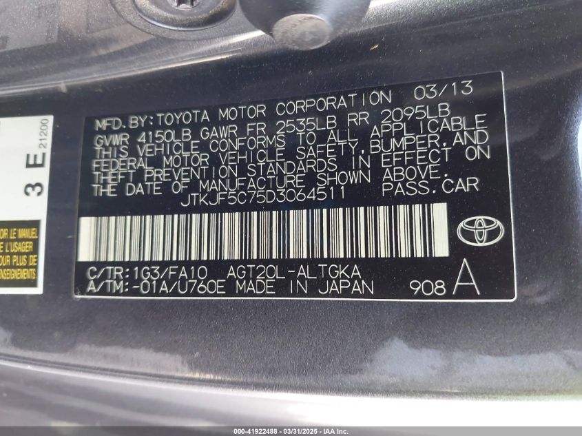 Колір СірийЦиліндри 4Привід Передній привідVIN JTKJF5C75D3******Стан НевідомоУшкодження Передня ліва