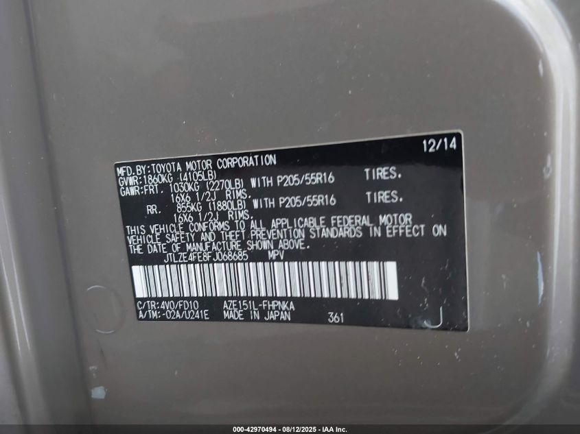 Колір КоричневийЦиліндри 4Привід Передній привідVIN JTLZE4FE8FJ******Стан НевідомоУшкодження Ліва сторонаДата аукціону 2025-09-16