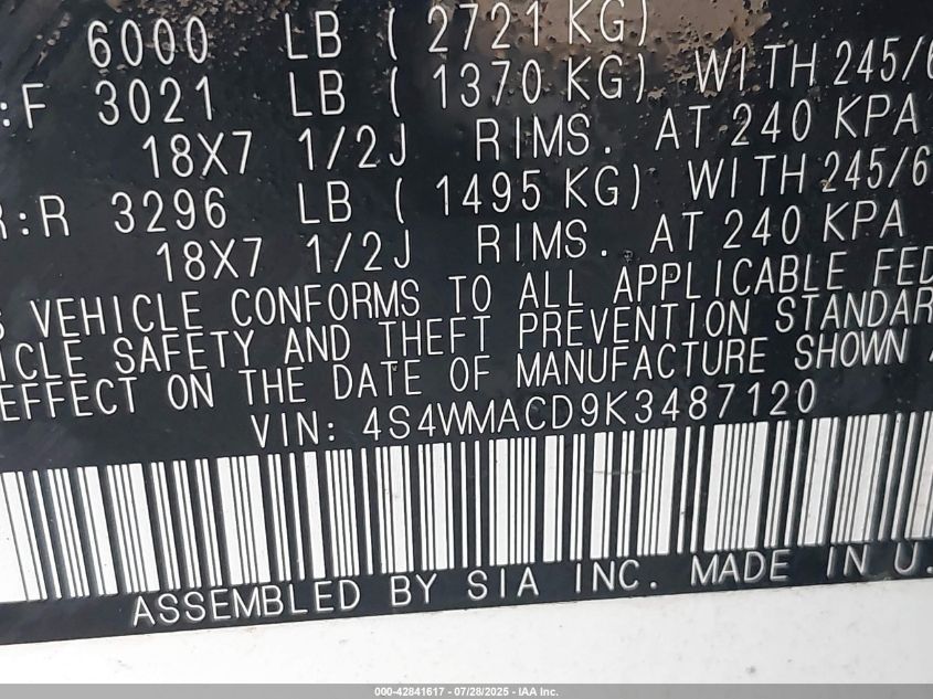 Колір БілийЦиліндри 4Привід Повний привідVIN 4S4WMACD9K3******Стан НевідомоУшкодження Передня або задняДата аукціону 2025-08-18