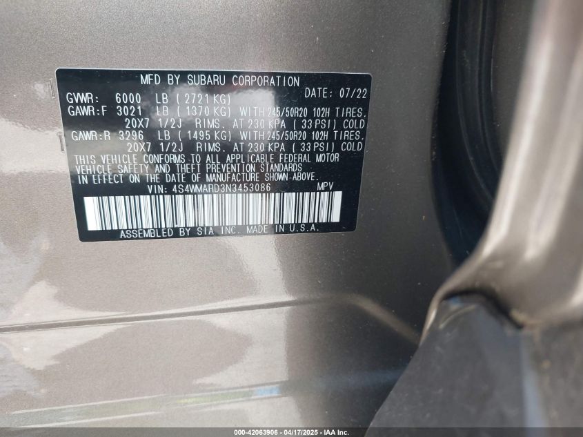 2022 SUBARU ASCENT 2022 року Бензин, 2.4, Повний привід, vin - 4S4WMARD3N3****** з США