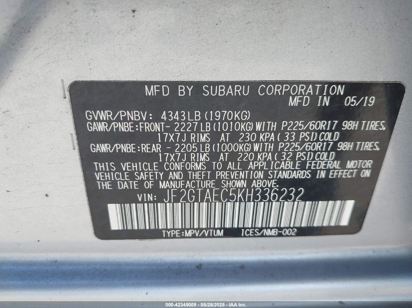 2019 SUBARU CROSSTREK LIMITED