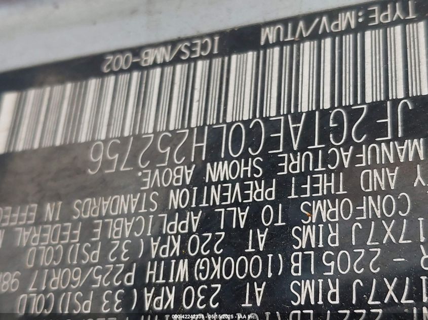 Колір СрібнийЦиліндри 4Привід Повний привідVIN JF2GTAEC0LH******Стан НевідомоУшкодження Передня або задняДата аукціону 2025-08-26