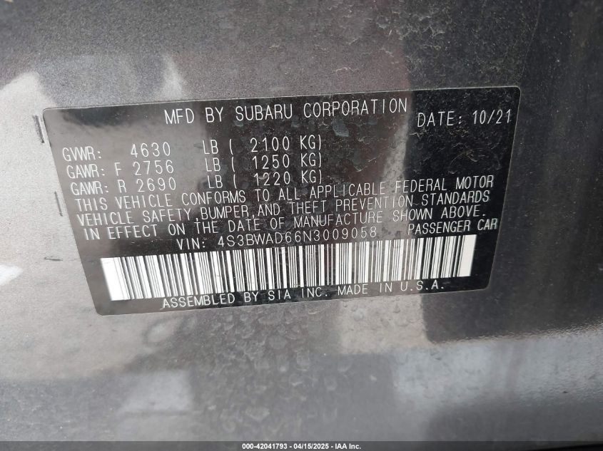 2022 SUBARU LEGACY PREMIUM
