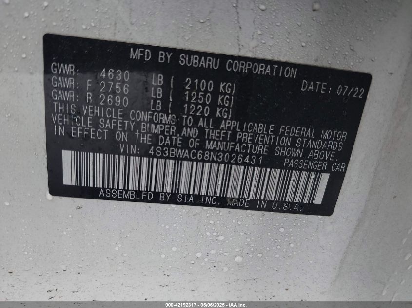 2022 SUBARU LEGACY PREMIUM