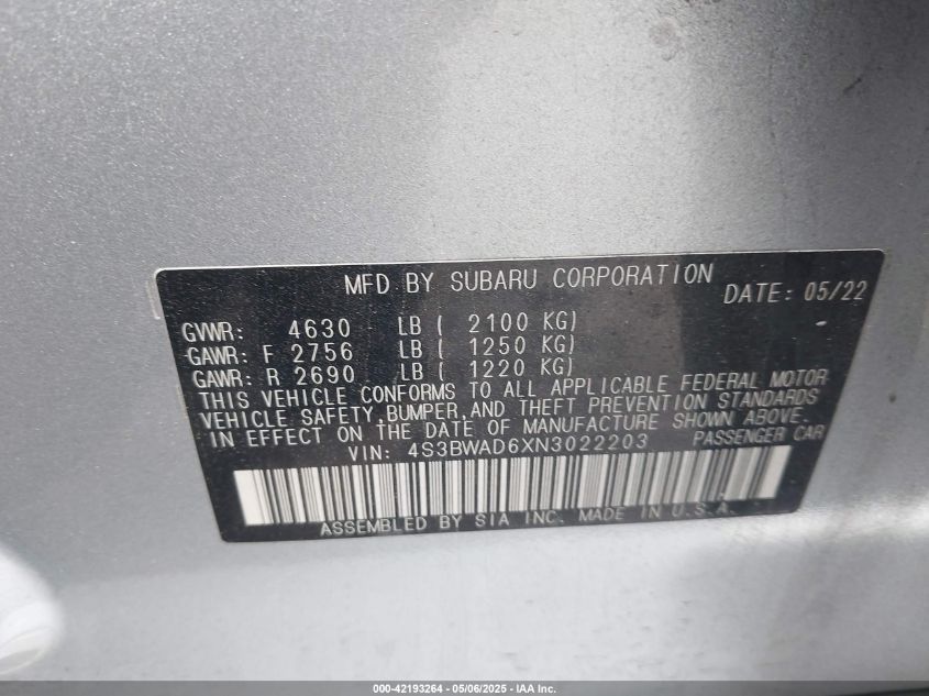 2022 SUBARU LEGACY PREMIUM