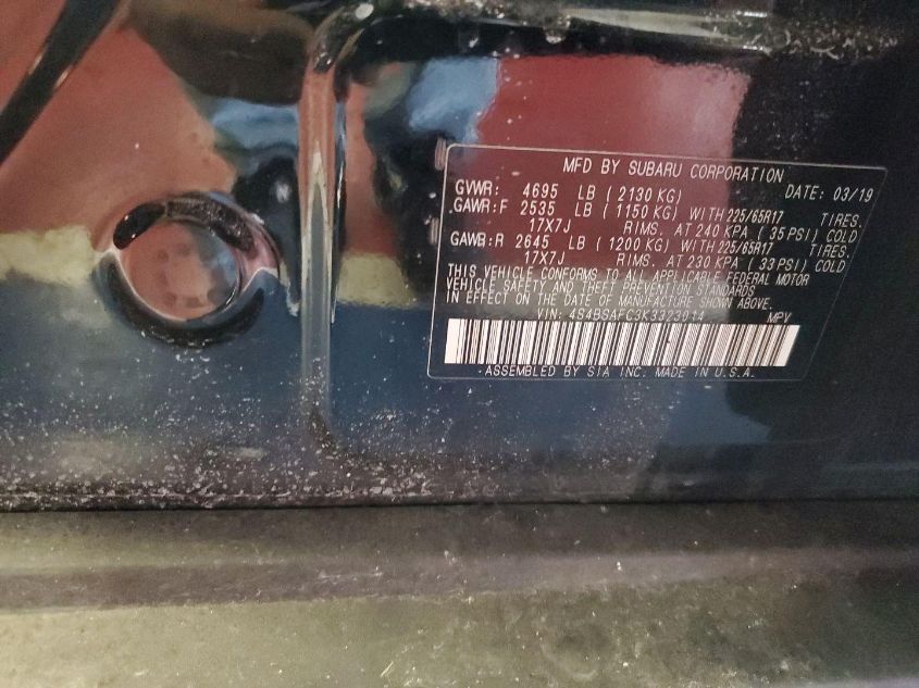 Колір Циліндри 4Привід Повний привідVIN 4S4BSAFC3K3******Стан НевідомоУшкодження Незначні