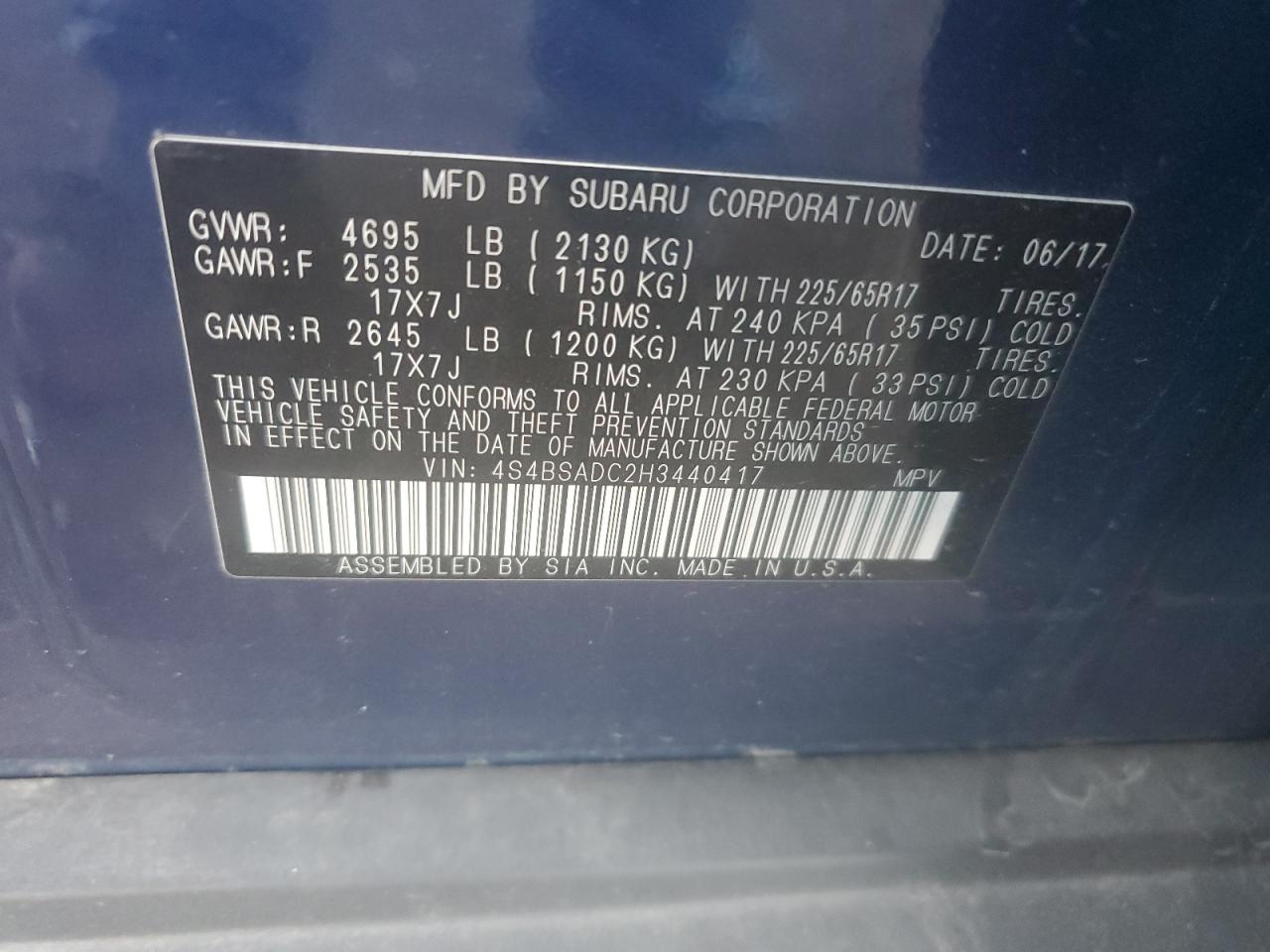 Колір СинійЦиліндри 4Привід Повний привідVIN 4S4BSADC2H3440417Стан Заводиться та їде (перевірено)Ушкодження НезначніДата аукціону 2025-12-05 AutoRIA